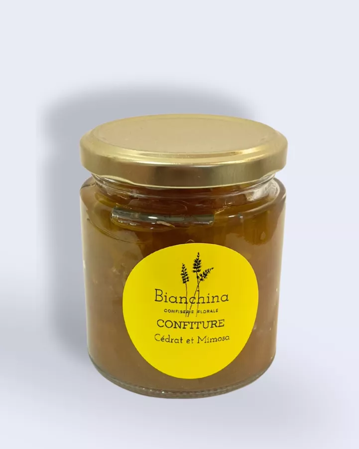Le mimosa, éclat doré de l’hiver provençal, vient alors l’enlacer de son parfum puissant et solaire. Ensemble, ils dansent entre lumière et intensité, domptant l’amertume pour offrir un équilibre parfait; ni trop acide, ni trop amer. En bouche, cette confiture surprend d’abord par son audace, avant de s’adoucir dans un souffle de tendresse.
